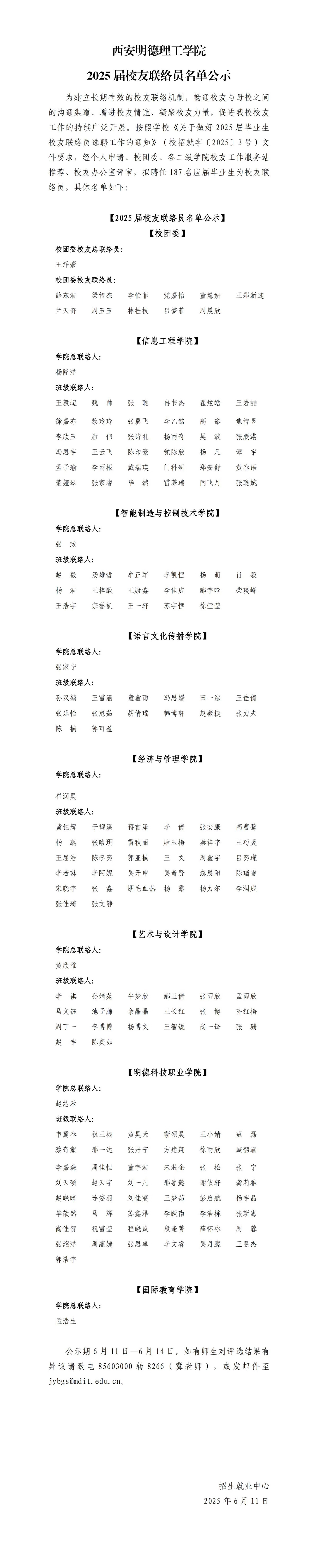2026年国际足联世界杯2025届校友联络员名单公示