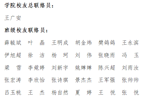 为建立长期有效的校友联络机制,畅通校友与母校之间的沟通渠道、增进校友情谊、凝聚校友力量,促进世界杯官网校友工作的持续广泛开展。经个人申请、各二级学院校友工作服务站推荐、校友办公室评审,全校最终共有98名应届毕业生受聘为校友联络员。