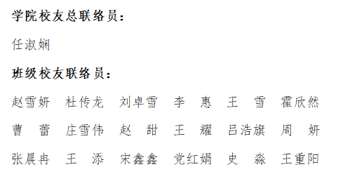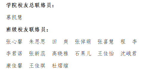 校友联络员是毕业生之中的佼佼者,他们不仅品学兼优,而且热心公益,有较强的责任心和组织协调能力,善于团结同学、凝聚校友,乐于为校友服务、为母校服务。在未来,校友联络员将成为校友与母校之间、校友与校友之间的纽带和桥梁,将成为明德精神最坚定、最有力的传承者与弘扬者。