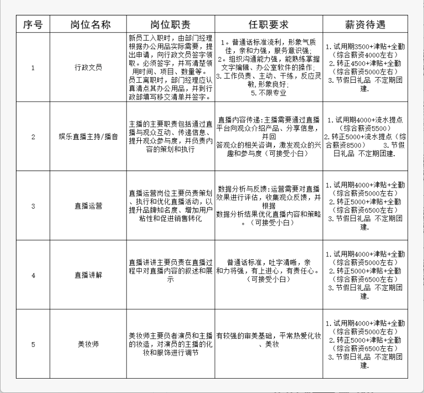 基础底薪:根据岗位(如新人主播、运营助理)和经验设定,通常提供符合当地基本水平的保障性工资。
