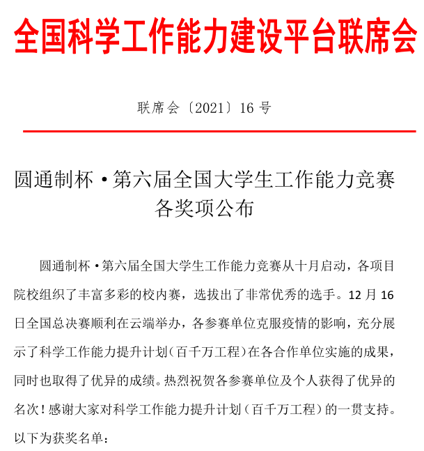 获奖情况如下: