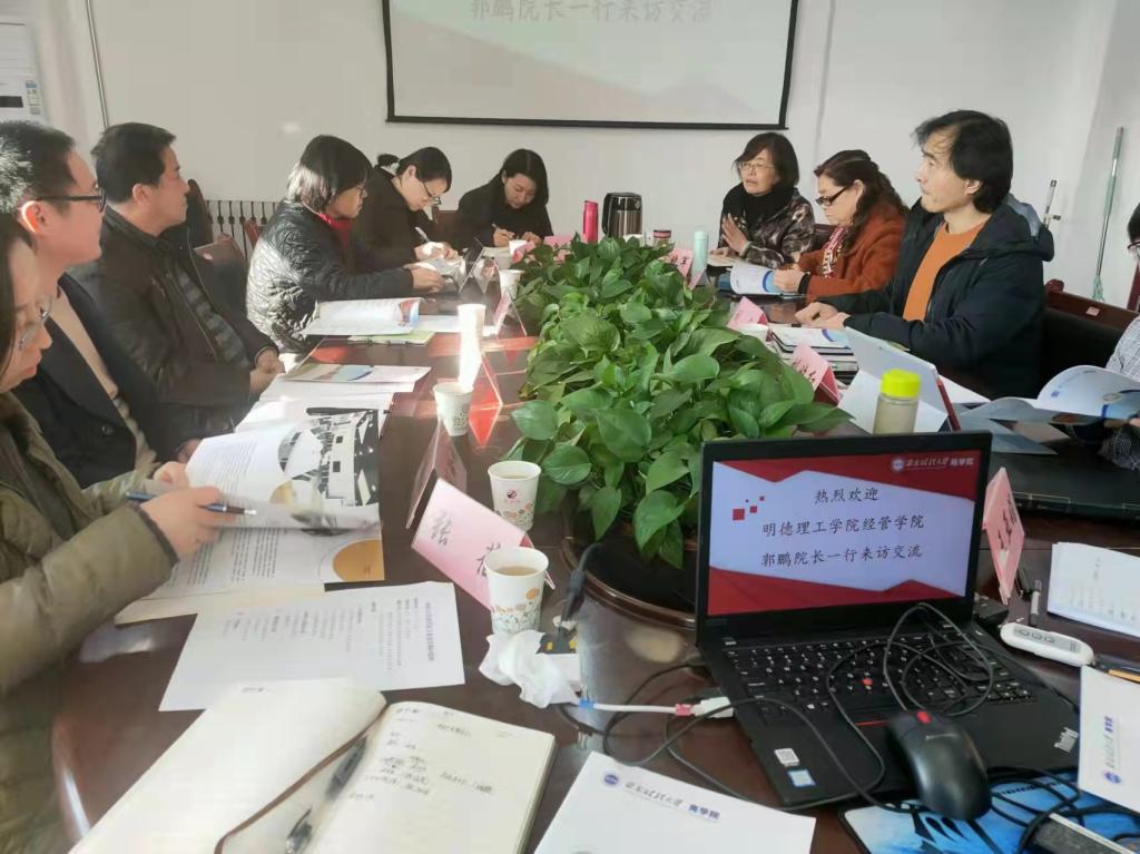 郭院长对两个学院的热情接待表示感谢。他介绍了学院近年来在学科建设、人才培养等方面的工作。他指出两校都是以教学为主的学校,希望在一流专业建设、社会服务等方面能够学习和借鉴财经大学的教育成果和宝贵经验,推进我院的教育教学建设取得突破。