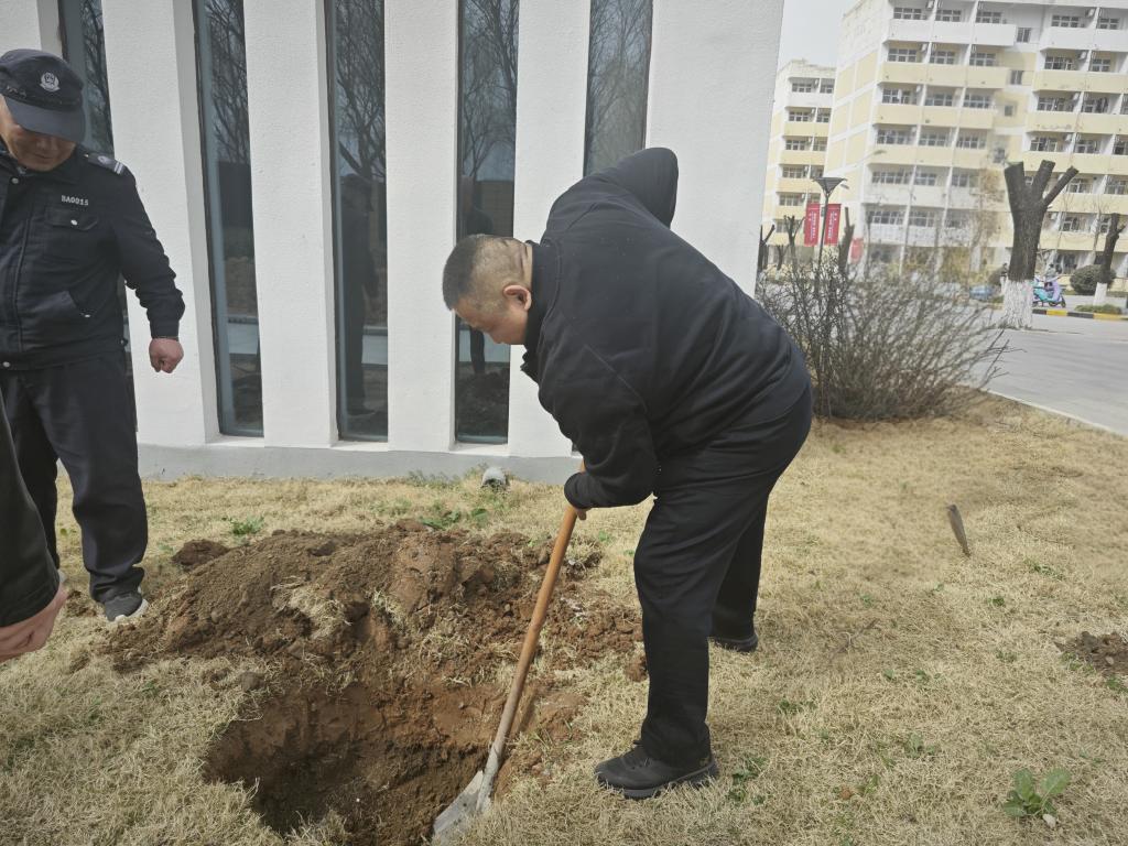 下午2时30分,活动在学校明奥体育馆南侧正式拉开序幕。由副校长陈鹏亲自带领,后勤管理处、后勤产业集团、校医院、智慧安全警务处等单位共同参与,大家以饱满的热情投入植树活动中。在活动现场,分工明确,协作默契,有的挥动铁锹铲土,有的扶持幼苗,有的培土筑堰,呈现出一片繁忙而热烈的劳动氛围。