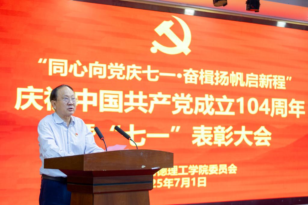 为扎实推进深入贯彻中央八项规定精神学习教育,弘扬伟大建党精神,同时表彰先进、树立典范,激励全校师生党员干部永葆初心、践行使命。7月1日上午,学校在建德楼203报告厅隆重举行“同心向党庆七一·奋楫扬帆启新程”庆祝中国共产党成立104周年暨“七一”表彰大会。全体校领导、校党委委员,处科级以上党员领导干部,各基层党组织书记,“两优一先”获奖人员,师生党员代表等300余人参加大会。会议由校党委副书记、校长王志刚主持。
