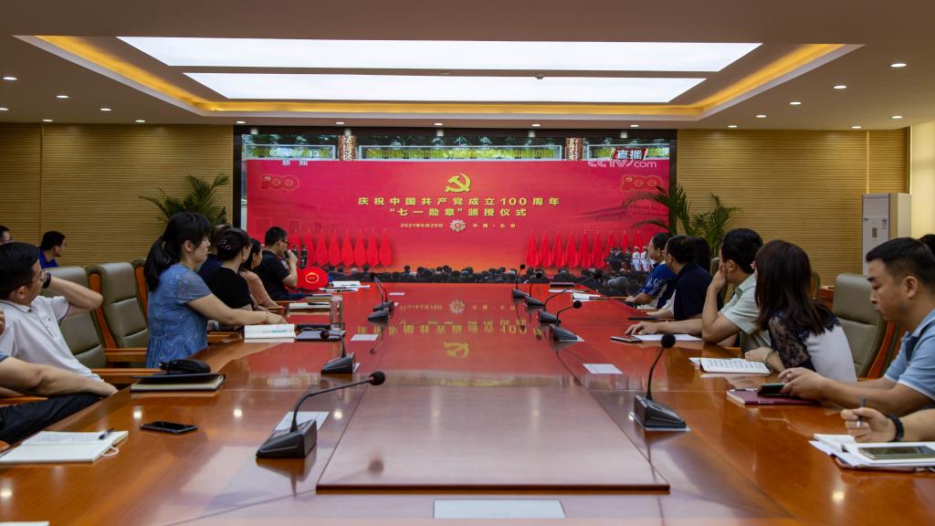 6月29日上午10时,“七一勋章”颁授仪式在人民大会堂隆重举行。中共中央总书记、国家主席、中央军委主席习近平向“七一勋章”获得者颁授勋章并发表重要讲话。学校组织全体支部书记、基层党委(党总支)书记、学生代表在明志楼518会议室集中观看大会盛况。
