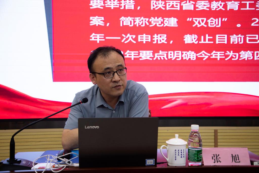 为深入学习贯彻党的二十大精神,推动主题教育走深走实,提升学校党建“双创”培育创建水平,9月13日下午,学校邀请西安工程大学党政办公室副主任、高级工程师张旭同志在建德楼202作党建“双创”专题辅导报告,各基层党委(党总支)书记、副书记,党支部委员参加培训。会议由党委组织宣传部部长高超主持。