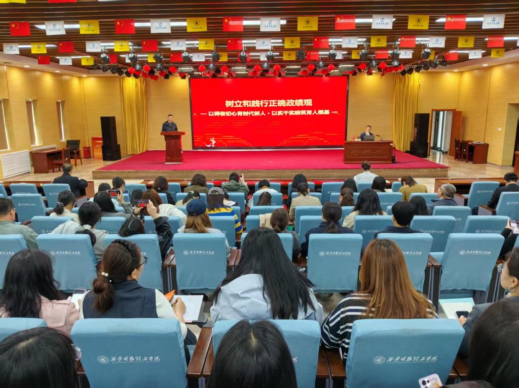 为深入学习贯彻习近平总书记关于树立和践行正确政绩观的重要论述,4月13日,马克思主义学院与通识教育学院党委在建德楼203报告厅举办专题党课,学院党委邀请西安理工大学鲁宽民教授作题为“树立和践行正确政绩观——以师者初心育时代新人 以实干实绩筑育人根基”的专题报告。学院全体党员教师参加学习,专题党课由学院党委书记王君涛主持。