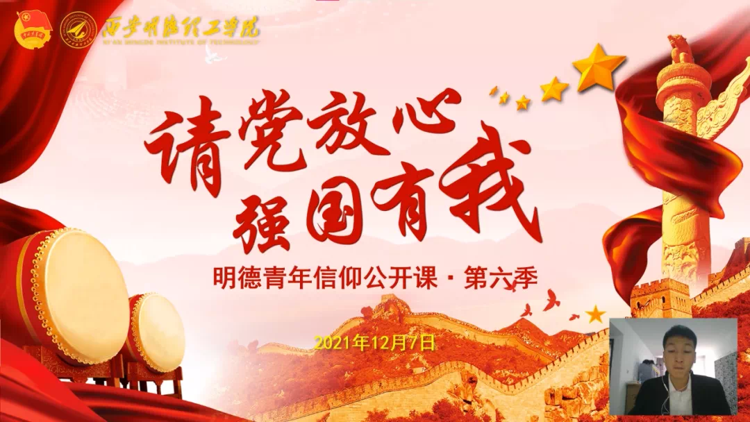 12月7日下午,“请党放心,强国有我”第六季明德青年•信仰公开课第四讲以线上直播的方式开展。学校2019届机械设计制造及其自动化毕业生、西部边疆建设公务员杨永亮主讲。学校各级团学组织学生干部参加了本次活动。