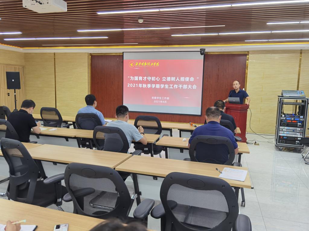 8月23日,学校在明志楼311报告厅召开了以“为国育才守初心 立德树人担使命”为主题的新学期学生工作大会,学校党委副书记董昊出席会议并讲话,各学院党委(党总支)书记、党委学生工作部全体干部、全体辅导员参加会议。会议由童杨梓主持。