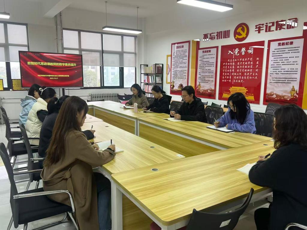 为主动适应数智时代发展要求,深化教学改革创新,10月21日中午13:00-14:00,马克思主义学院习近平新时代中国特色社会主义思想概论教研室围绕“数智时代思政课教师的数字素养提升”主题,举办专题研讨会。会议由教研室主任周蓓蓓主持,教研室全体教师参加。