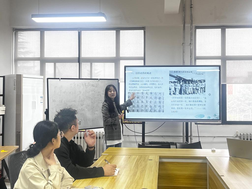 随后,豆阿敏老师围绕第一章第五节国防动员的内容进行了说课展示。豆老师从国防动员的教学目的和及要求出发,系统的讲解了国防动员的重难点。说课过程条理清晰,重点突出,深入剖析了教材知识体系,对教学内容进行了丰富和拓展。豆老师表示,国防动员教学应当紧密结合当前国际安全形势变化,通过案例分析、情景模拟等多种方式,帮助学生理解国防动员在现代战争中的战略地位和作用,培养学生的国家安全意识和综合国防素质。