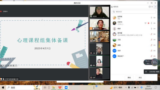 为贯彻和坚持教师集体备课制度,大学生心理健康教育课程组全体专兼职教师于4月1日、4月7日分别在腾讯会议、2号实训楼南204室开展集体备课。