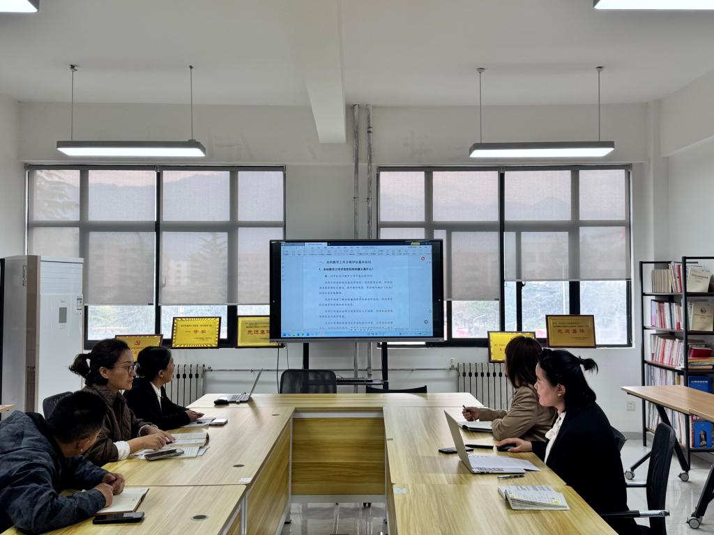 为深入贯彻落实学校迎评促建工作精神,进一步提升教师教育教学能力,夯实迎评工作基础,4月8日,德育教研室组织全体教师召开“应知应会强本领 教师说教学促评建”专题会议。会议由教研室主任樊静主持,全体教师参加。会议围绕评估指标学习、教学汇报与研讨等内容展开,旨在统一思想、凝聚共识,以评促改、以评促建,全面提升教学质量。