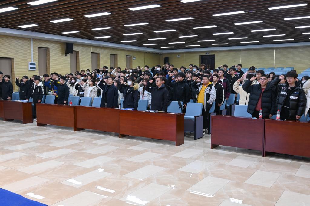 报告中,主讲人路小红法官从三个空间角度解读法律。一是婚姻家庭类,二是社会生活类,三是职业生活类。根据讲解内容,路法官结合相关鲜活案例与自身的工作经历,深入浅出的讲解法律知识,培育大学生法律思维。结论中引用卢梭《社会契约论》中的言论“人生而自由,却不往不在枷锁中”,提醒大学生时时刻刻遵纪守法。最后,路法官请所有参讲座的师生们进行宣誓,激起师生们守法的信念,做一个爱党、爱国、爱人民的守法公民。