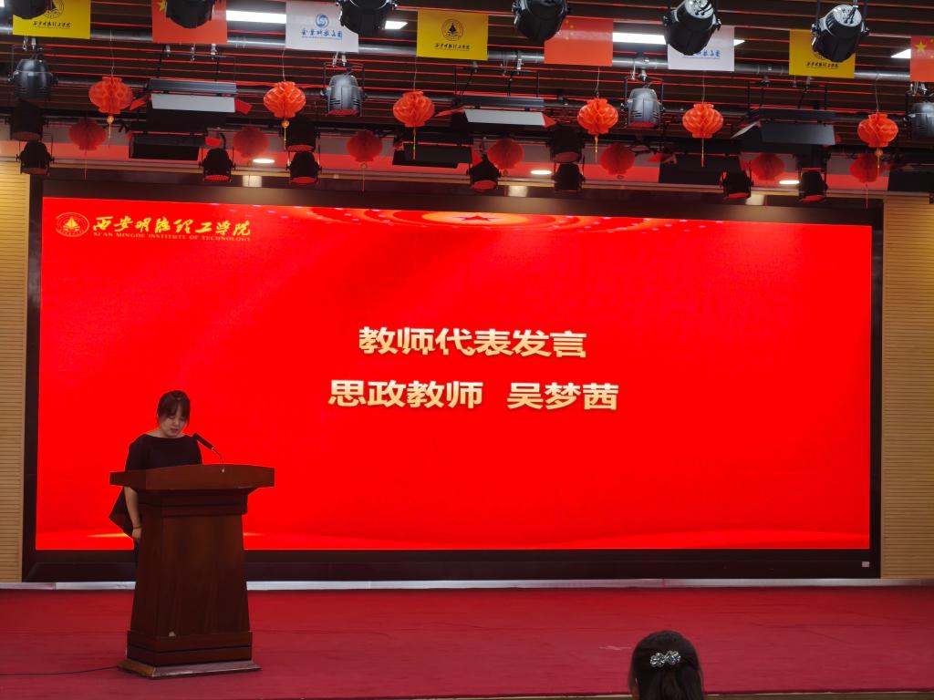 教师代表吴梦茜在会上发言,她结合自身在岗位上成长经历,分享了对教育家精神的深刻感悟,表达了坚守教育初心、践行师德规范的决心。