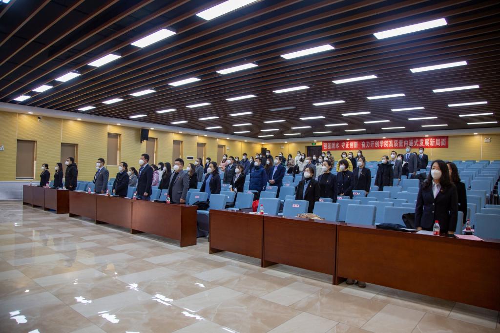 学院党委书记王君涛向大会作题为《强基固本守正创新奋力开创学院高质量内涵式发展新局面》的报告。报告对建院以来特别是2020年以来工作进行了回顾与总结。报告指出,自建院以来,在学校党政的正确领导下,全院教职工团结一心、众志成城,紧紧围绕学校人才培养中心工作,不断深化教学改革,进行科学研究,在各方面均取得了可喜成绩。报告认真总结了学院党委在抓好基层党建工作,推动学院工作中发挥的作用,并客观实际地分析了存在的弱项和短板。报告强调,今后五年是学院发展的关键时期,要围绕人才培养中心任务,以“服务学生全面发展,服务专业建设”为出发点和落脚点,以本科教学合格评估为主线,以教学改革、教学过程监控和教育教学质量提升为抓手,以师资建设为基础,以课程建设为重点,推进“课内课外互通、线上线下互融”的开放式育人模式改革,实施“五大工程”助力学院高质量内涵式发展,为学校高素质应用型人才培养提供德智体美劳全方面发展的基础性支持。