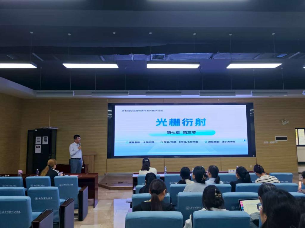 获“全国高等学校物理基础课程青年教师讲课比赛”西北赛区与陕西赛区一等奖、西北工业大学物理科学与技术学院李东副教授,带来“光栅衍射”教学示范,既展现物理原理与生活的紧密联结,又融入课程思政,教学逻辑清晰、互动氛围浓厚,尽显深厚教学功底。现场教职工认真聆听,不时记录关键要点,在互动提问环节积极交流教学中的困惑与心得,现场学习氛围浓厚。