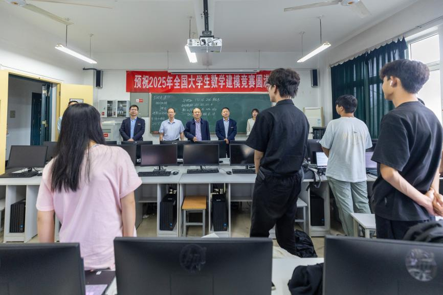本次竞赛受到学校领导的高度重视。9月5日下午3点,校长王志刚、党委书记马川鑫、副校长林东、副校长刘星专程来到竞赛现场开展慰问工作,为大家送上水果等慰问品。在与学子的交流中,王志刚校长殷切嘱托,强调数学建模竞赛既是检验学生专业能力与协作精神的重要平台,更是学校落实竞赛育人理念的关键载体;提及本次竞赛题目贴近实际,学生在解题过程中可锻炼创新思维、提升解决复杂问题的能力,而这正是学校培养高素质人才的重要路径。同时,学校一直以参赛学子为傲,希望大家在后续竞赛中保持沉着冷静的心态,发挥团队协作优势,充分展现平时培训的积累——既要争取竞赛佳绩,也要在过程中收获成长,发扬“明德”精神,力争交出优秀答卷,为学校争光。