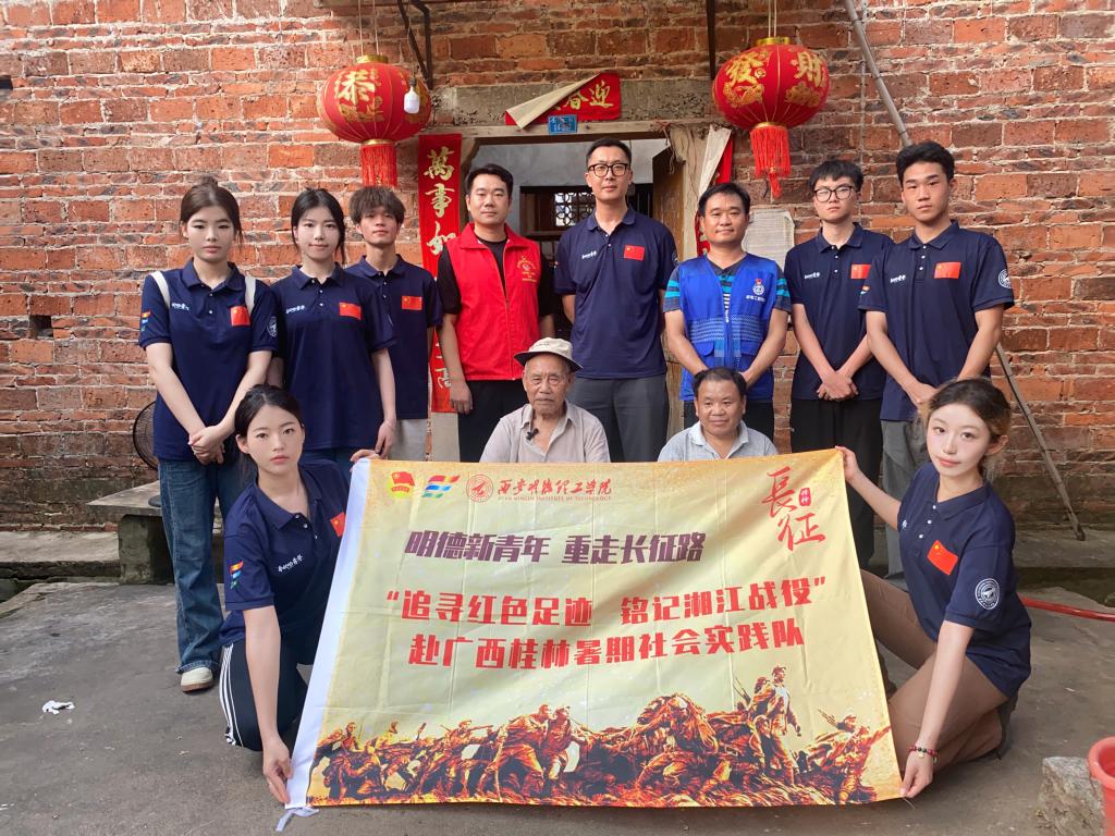 紧接着,实践队伍前往蒋老爷爷家。蒋老爷爷是本村最为了解当时红军夜渡大坪渡口的老人,作为一名退伍老兵,他从小就耳濡目染,听着红军渡江的故事长大。在风华正茂之时,他毅然投身军旅,投身于新疆建设的伟大征程。十三年的军旅生涯更让他对红军充满敬意。所以,蒋老爷爷是怀着激动的心情跟实践队员们讲述着渡江故事。在蒋老爷爷家门前,实践队成员满怀崇敬与期待,静心聆听他讲述当年红军渡江的故事。“他们当时哩,带着伤员,背着渡江是很困难的,所以,就有红军来到我们村把我们的门板拆下来,抬着伤员渡江”“当时红军们哩,是晚上渡的江,但是除了向村里的人借走门板,他们都没有去打扰村里人睡觉”他详细地描述着红军战士们为渡河所做的准备以及他们与当地百姓之间的深情厚谊。为躲避敌方侦查而抢渡湘江的惊心场景,那些感人至深的军民互助画面,仿佛一幅生动的历史画卷在实践队员眼前徐徐展开。
