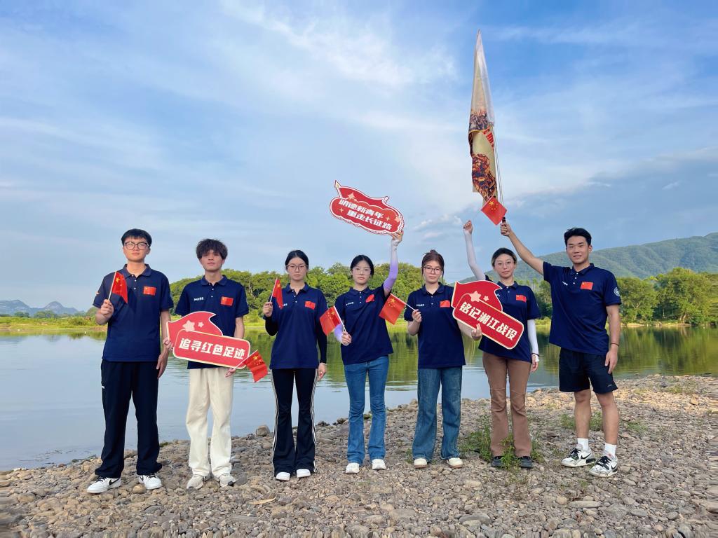江风拂面,带着几分历史的凉意,实践队伍的成员们驻足江边,凝视着那曾经见证无数英勇与牺牲的滔滔江水,心中涌动着难以言喻的敬意与哀思。在情感的驱使下,他们自发组织起来,朗诵起那首在桂北地区广为流传的民谣:“英雄血染湘江渡,江底尽埋英烈骨。三年不饮湘江水,十年不食湘江鱼。”每一字一句,都饱含着对红军烈士最真挚的缅怀与对那段峥嵘岁月的深刻铭记。