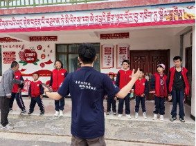 在学校画室、职教中心,志愿者们看到了一幅幅精美的画作和手工制品,绘画教师索朗次仁是一位聋哑老师,他擅长的掐丝沙画融合了西藏民族绘画与当代现代艺术,可以说精美绝伦,志愿者们通过学习了解到每一幅作品背后的意义和绘画技巧,也通过互联网的方式帮老师和学生们宣传作品及义卖,被马来西亚、台湾、北京等各地游客咨询并购买。在操场上,孩子们与志愿者们舞蹈、歌唱等才艺展示,志愿者为孩子们教授中国舞,赢得孩子们阵阵掌声。通过互动,志愿者们发放来自全国各地爱心人士捐赠的内衣、内裤、袜子等,并提醒孩子们要经常换洗衣物,保持个人卫生,少生病,爱惜身体,孩子们也感谢所有人对他们的关心。
