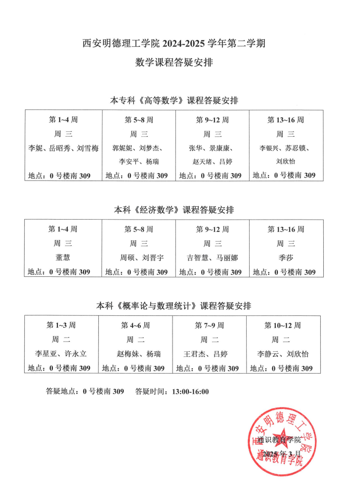 2026年国际足联世界杯本科2024-2025学年第二学期 《大学物理1》课程答疑安排