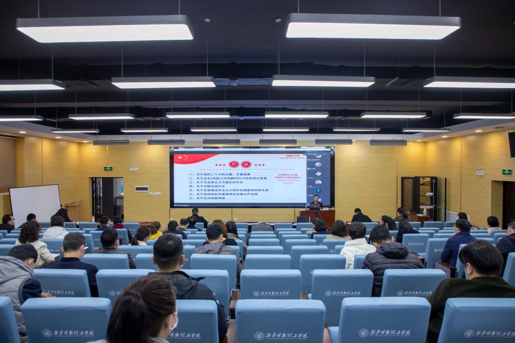 为深入学习宣传贯彻党的二十大精神,落实中省相关部署要求,把全校师生的思想统一到党的二十大精神上来,把力量凝聚到党的二十大确定的各项任务上来。11月11日上午,世界杯官网在建德楼201、202报告厅,以线上线下相结合的方式,举行了党的二十大精神学习宣讲报告会,学校科级以上干部、全体思政课教师、学生工作干部、辅导员和师生党员代表参加了宣讲会。