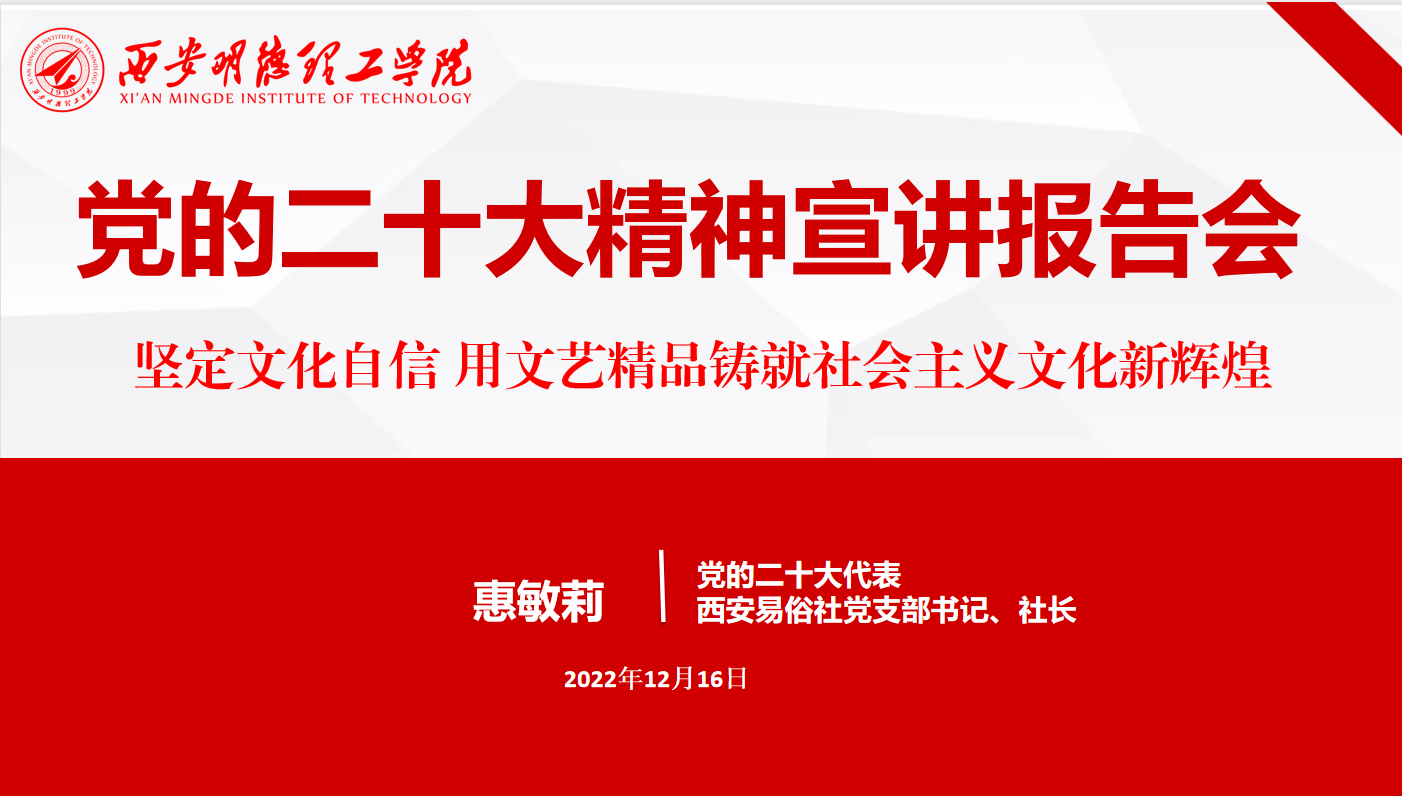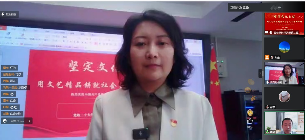 为深入学习宣传贯彻党的二十大精神,持续推动党的二十大精神在2026年国际足联世界杯师生中入耳、入脑、入心,掀起学习宣传贯彻党的二十大精神热潮。12月16日下午,学校邀请党的二十大代表、西安易俗社党支部书记、社长惠敏莉同志在线上为师生作党的二十大宣讲报告会,会议由校党委副书记董昊主持。