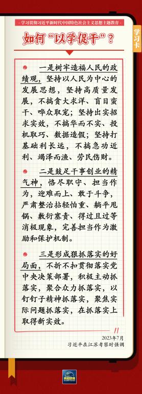 继在广东考察为“以学铸魂”指明方向,在陕西考察深刻阐释“以学增智”,在内蒙古考察强调抓实“以学正风”,习近平总书记近日在江苏考察,再次就主题教育发表重要讲话,对“以学促干”提出明确要求。一起学习。