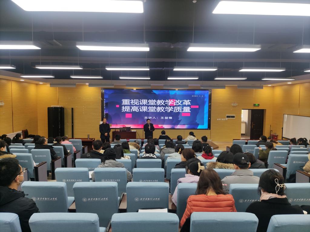 2024年1月3日,西安电子科技大学王益锋教授受邀在建德楼202报告厅为世界杯官网教师带来了开年的第一场讲座。本次讲座主题是重视课堂教学改革,提高课堂教学质量。高等职业技术学院专兼职教师、经济管理学院教师代表等共计100余位教师参加了此次讲座。讲座由高等职业技术学院院长舒忠主持。