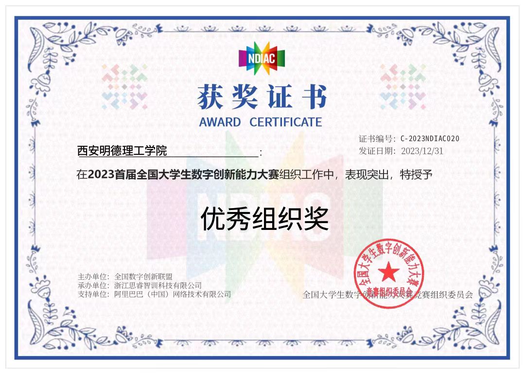 近日,2023首届全国大学生数字创新能力大赛结果公布:世界杯官网高等职业技术学院学生获全国二等奖3项、三等奖1项,5名教师获优秀指导教师奖,学校并获优秀组织奖。