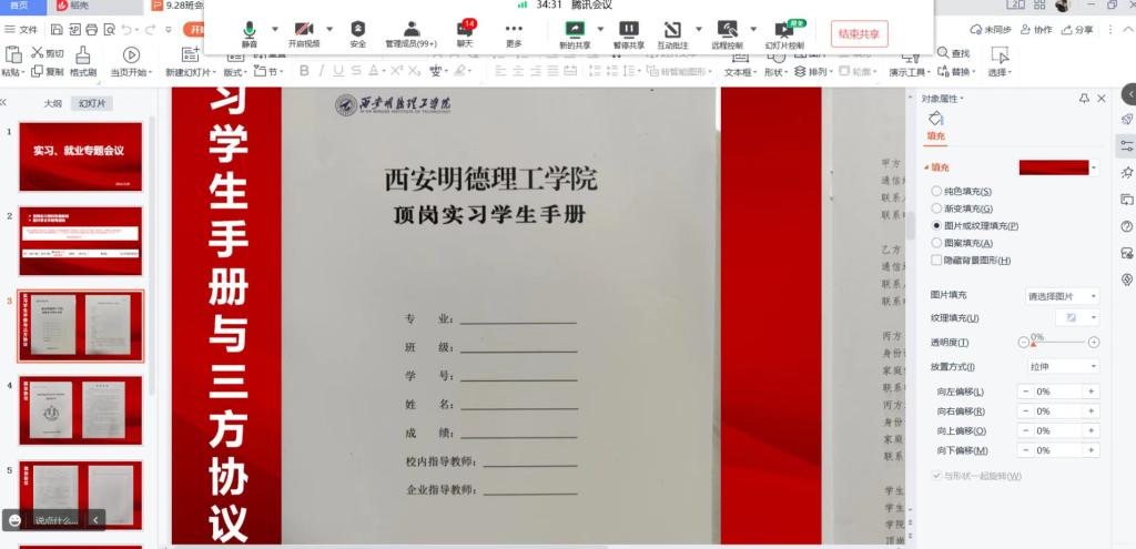 会议初始,吴秋月老师为同学们详细讲解了顶岗实习材料、就业材料等相关事项,并告知毕业生们在求职道路中,要做好自身职业生涯规划、提高自身防骗意识、注意求职陷阱,要善于利用现代网络平台查询辨别就业单位是否合法合规。在实习过程中,要认真遵守实习单位相关要求,遵守法律法规和当地防疫政策,不可从事任何违反国家法律法规的事业。实习期间要常态化关注班级群消息,与学校指导老师保持密切联系。