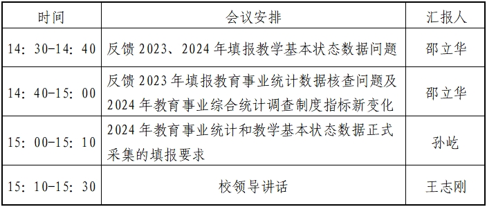 2024年的教育事业统计和高等教育质量监测数据对于世界杯官网本科教学工作的合格评估至关重要。鉴于填报工作的紧迫性和重要性,为确保数据的真实、客观、准确,经研究,决定召开“2024年教育事业统计和高等教育质量监测数据填报工作部署启动会”。现将会议相关事宜通知如下: