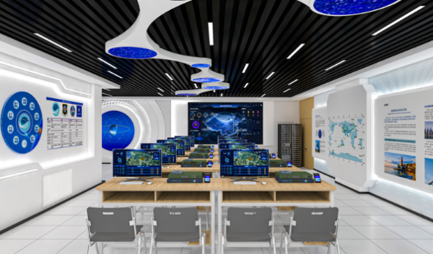 GNSS信号处理实验室,该实验室一期于2024年6月投入使用,由学校联合中国科学院国家授时中心共同建设。实验室紧跟国家发展趋势,以北斗导航为科研方向,配备了先进的多媒体教学系统、自研的导航信号配置管理软件平台、全流程导航信号收发处理的硬件系统,以软硬结合的实践方式探索导航的各个流程。