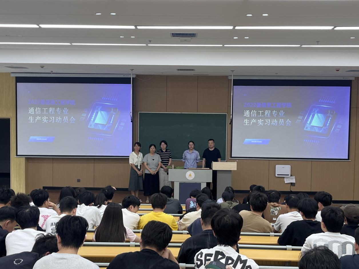 为深化产教融合,提升学生实践能力,推动应用型人才培养高质量发展,信息工程学院通信工程专业于2025年6月24日,分别了进行了教师动员大会,2022级、2023级和2024级学生动员大会。专业负责人、实习带队老师、辅导员及全体通信工程专业学生参加会议。本次实习共涉西安鸥鹏互联科技有限公司、西安安泰电子科技有限公司、西安航光卫星测控技术有限公司及西安协力超越科技有限公司四家公司,涉及学生318人。