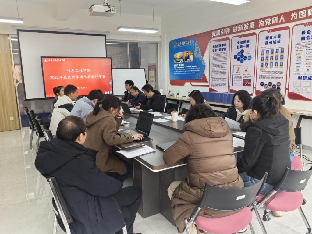 2026年3月16日中午13时,信息工程学院在明志楼北206会议室召开2023年度校级教学团队验收评审会。会议由教学副院长张健主持,冯强院长及教学工作指导委员会委员参加,对学院六个教学团队的建设成果进行集中评审。