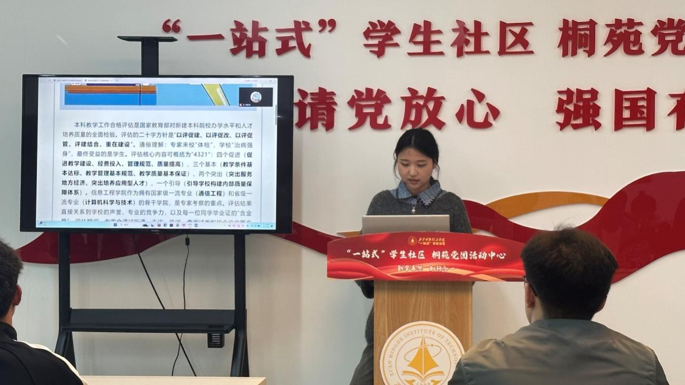 读书分享结束后,支部党员高飞艳组织全体党员集中学习本科教学工作合格评估应知应会知识点,明确评估意义与学生党员职责,号召大家主动学习、带头践行,以良好学风和实际行动助力学校迎评促建工作。