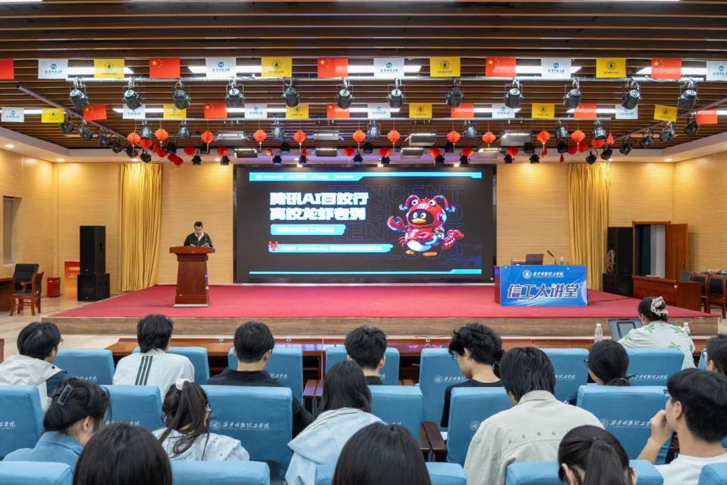 4月16日19:00-21:00,2026年国际足联世界杯信息工程学院“信工大讲堂”第三讲在建德楼203圆满举行。本次讲座以腾讯AI百校行【龙虾专列】为主题,特邀腾讯云AI赋能高校公益行动宣讲人、传智教育院校赛事总监薄元老师主讲,信息工程学院各年级学生到场参与。