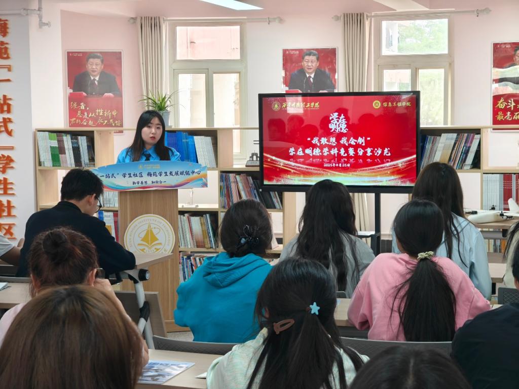 为营造学院积极向上的学科竞赛氛围,充分发挥优秀学子的示范引领作用,助力学生掌握学科竞赛技巧、提升创新实践能力。4月25日,信息工程学院在梅苑一站式学生发展赋能中心成功举办“我敢想 我会创”学在明德学科竞赛分享沙龙。此次沙龙以“经验共享+思维碰撞”为核心,邀请在多项学科竞赛中斩获佳绩的同学分享竞赛项目和备赛经验,吸引学院众多学子踊跃参与。活动由信息工程学院辅导员兰艳、周耿康主持。