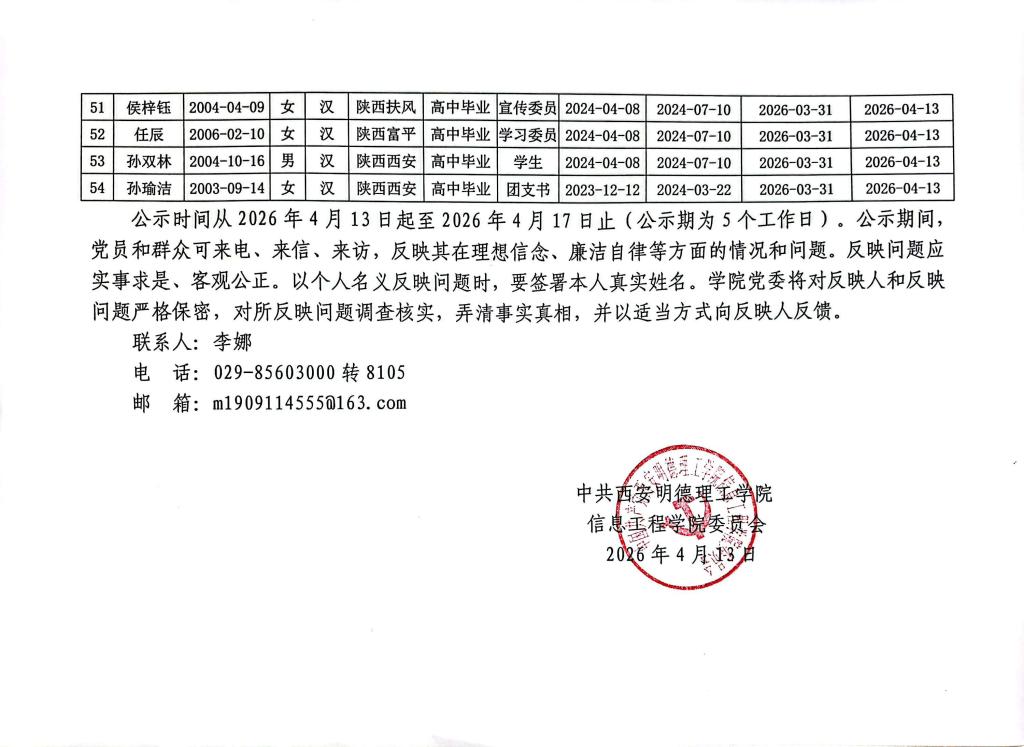 关于将王华剑等54名同志确定为发展对象的公示