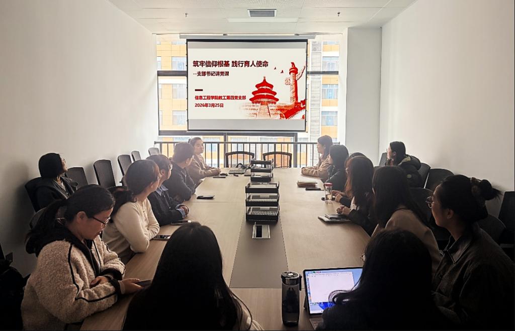 2026年3月25日,信息工程学院教工第一党支部在学院会议室开展了主题党日活动,支部青年委员崔青同志以“人工智能时代下的爱国主义教育——计算机专业教师的使命与担当”为题,为全体党员教师作专题分享。此次活动旨在深入探讨人工智能技术快速发展背景下,如何将爱国主义教育融入计算机专业教学,引导广大教师坚定科技报国信念,培养堪当民族复兴大任的时代新人。 活动伊始,支部组织全体党员教师集中观看了纪录片《人工智能...