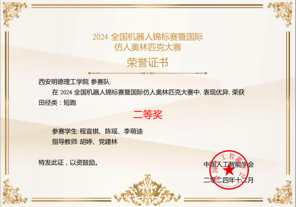 近三年,信息工程学院的学生代表学校参加“国际先进机器人及仿真技术大赛”、“中国机器人及人工智能大赛陕西赛区”、“中国机器人及人工智能大赛全国总决赛”和“全国机器人锦标赛”等多个比赛的多种赛项,荣获100余项奖项。