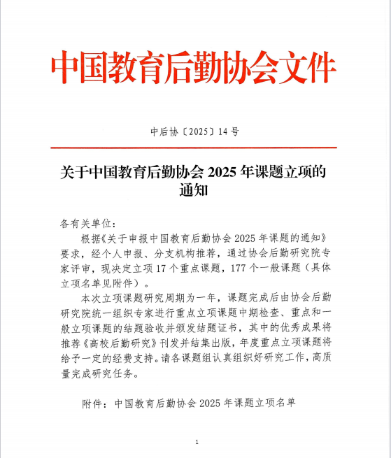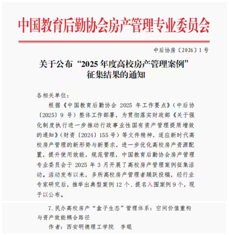 近日,中国教育后勤协会房产管理专业委员会公布2025年度高校房产管理案例评选结...